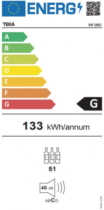 Vinoteca Teka RVF10051GBK, Cristal negro, 126 cm, 51 botellas, G